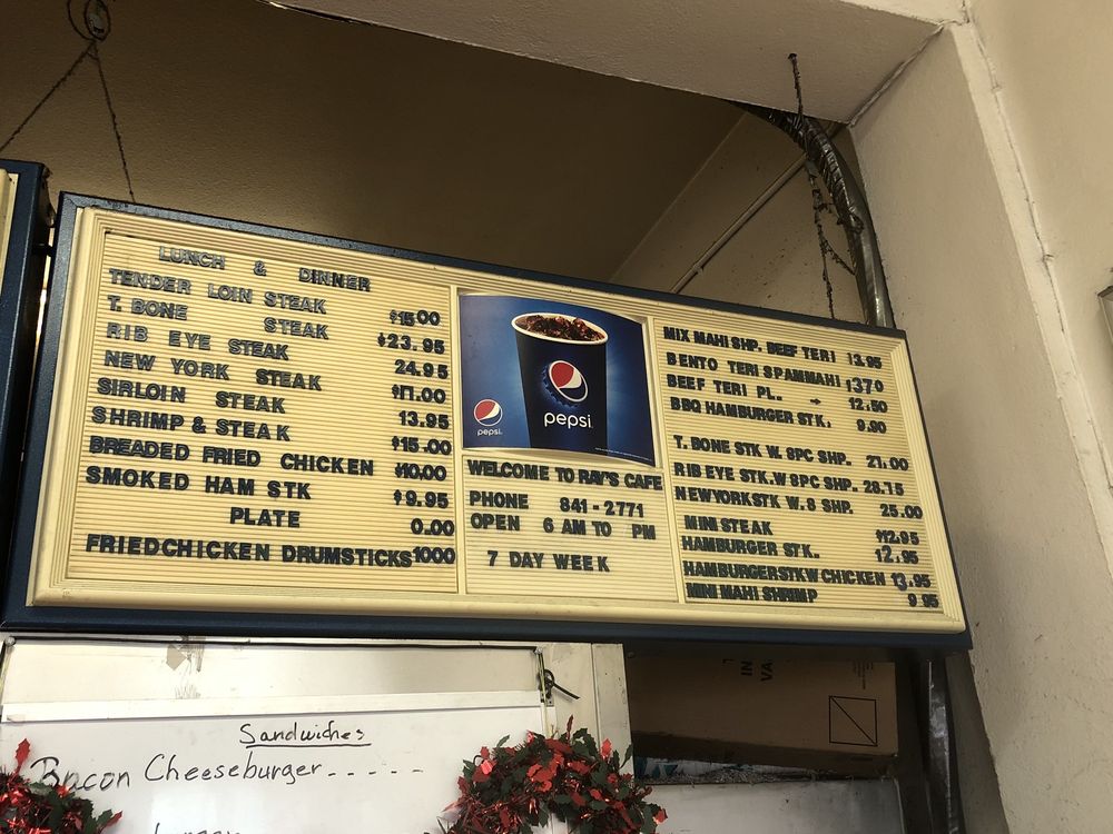 Ray's Café, located in Honolulu, offers a unique dining experience with a blend of steakhouses, cafes, and American cuisine. This hidden gem is known for its generous portions and affordable prices, making it a favorite among locals. The cozy atmosphere and friendly staff add to the charm of this hole-in-the-wall eatery. Specializing in dishes like roast beef, salmon, lamb, prime rib, and steak, Ray's Café promises a satisfying meal with each visit. The menu also includes options like chicken cutlet, fried chicken, mahi mahi, and pork chops, all served with flavorful sides like mac salad and white rice. Despite limited seating and street parking, the quality of food and attentive service make Ray's Café a must-try dining destination. The reviews praise the food quality, portion sizes, and the welcoming owner, creating a memorable dining experience.